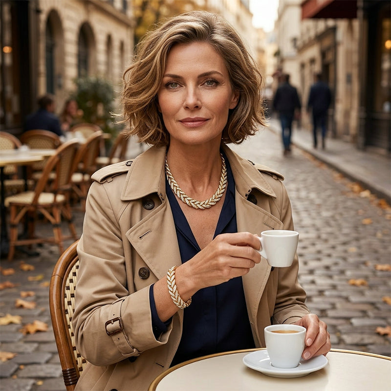 Adjustable Rhinestone Leaf Link Necklace & Bracelet Set