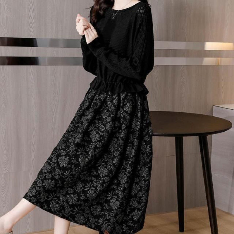 Knit Elastic Waist Stitching Dress